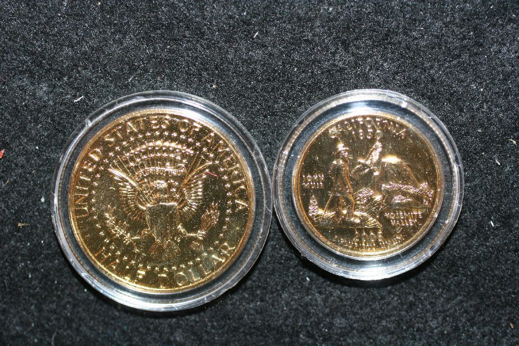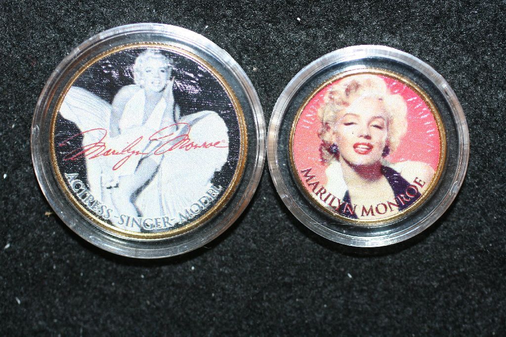 2009 Kennedy Half Dollar & 2005 California State Quarter; Colorized W/Images of Marilyn Monroe; 24K Gold Plated