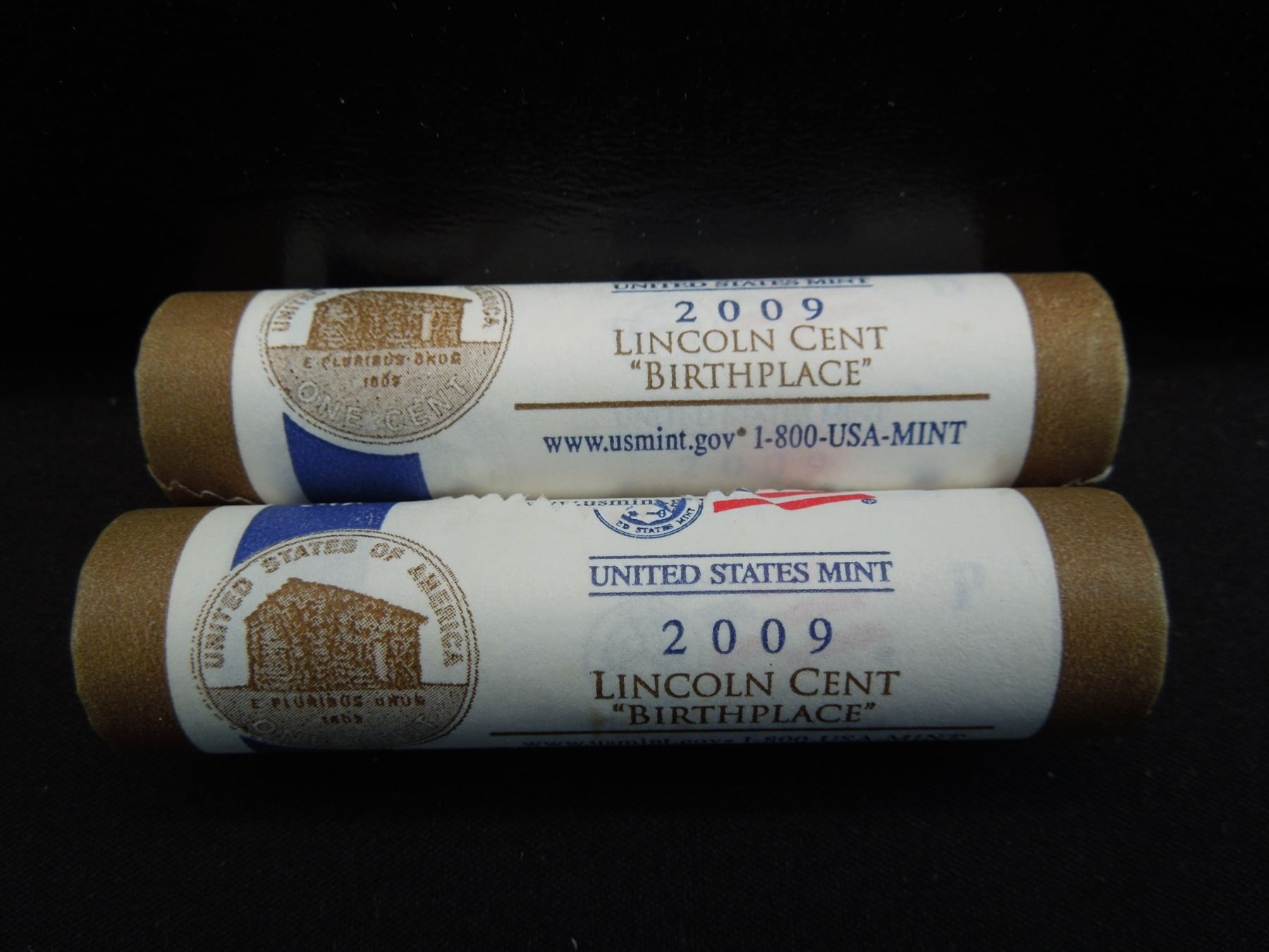 2009 Lincoln birthplace two roll set from the mint. The set includes an original but roll from Philadelphia and Denver mints