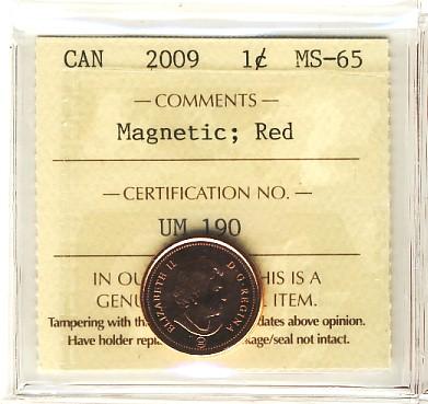 2009 Logo 1¢ magnetic ICCS MS65 Red