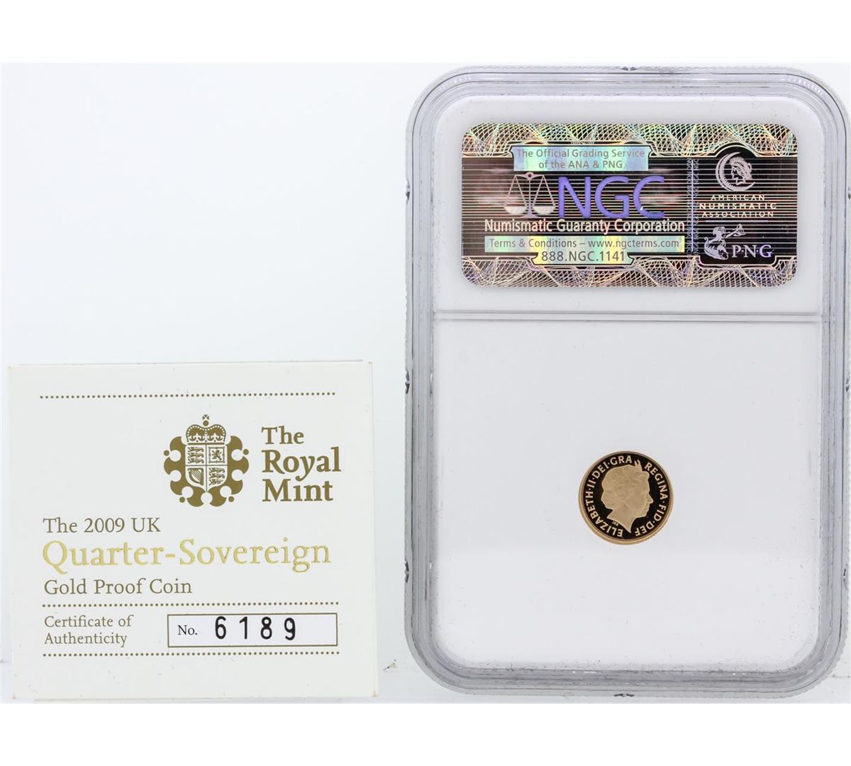One 2009 NGC PF69 Ultra Cameo Great Britain 1/4 Sovereign Gold Coin. NGC Certified.