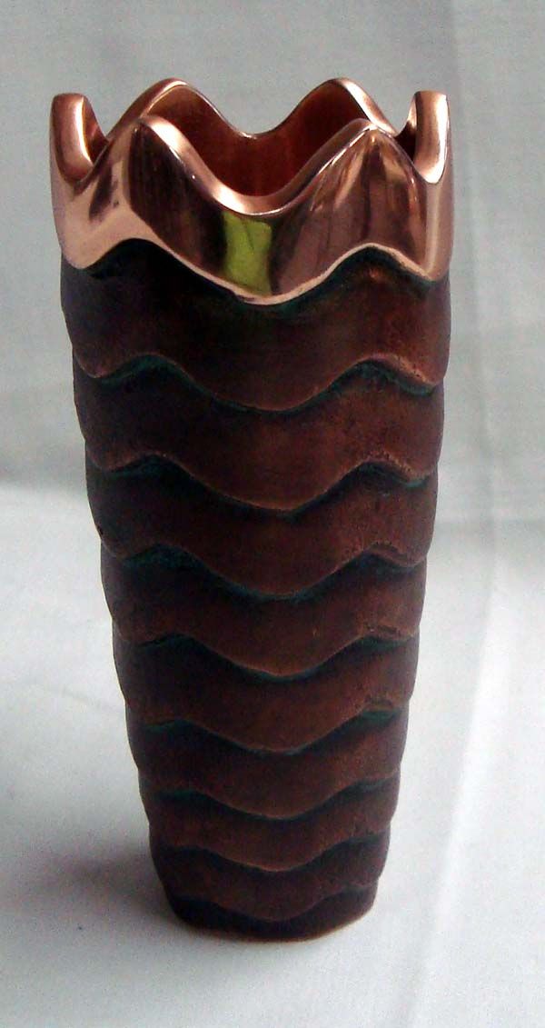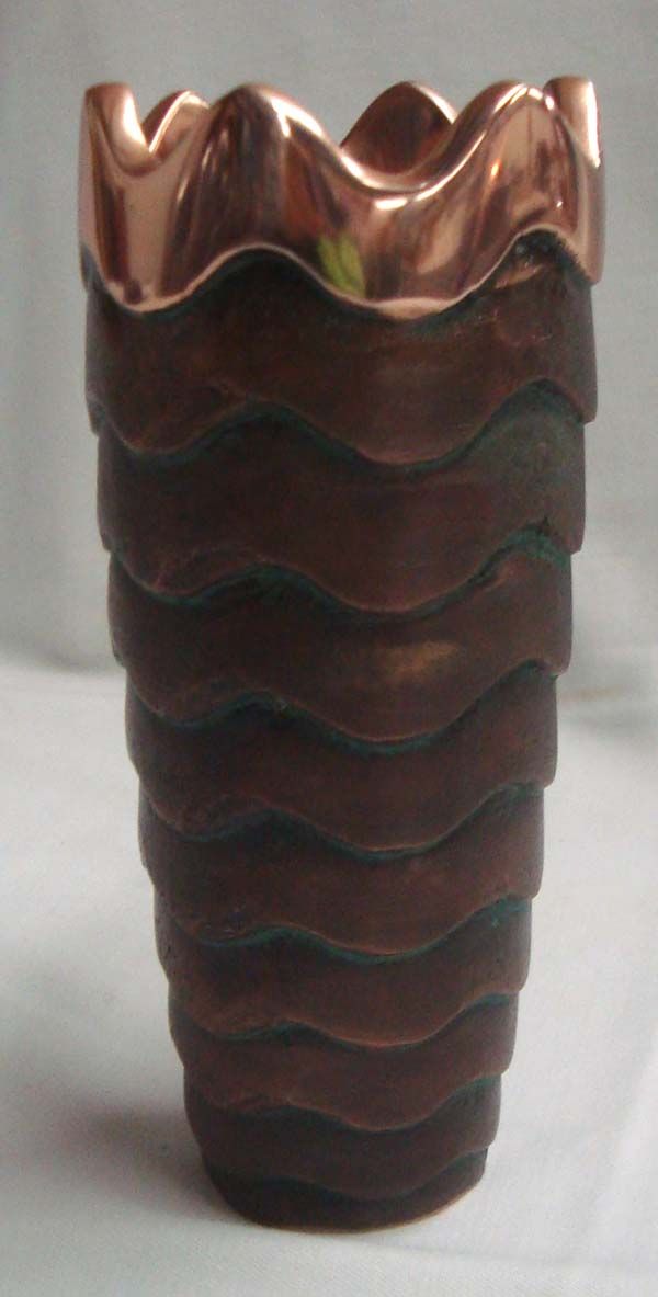 2009 Nambe Copper Vase - Lisa Smith. Very heavy, nice wave design. Measures approx. 6 1/2'' H x 3'' Diameter.