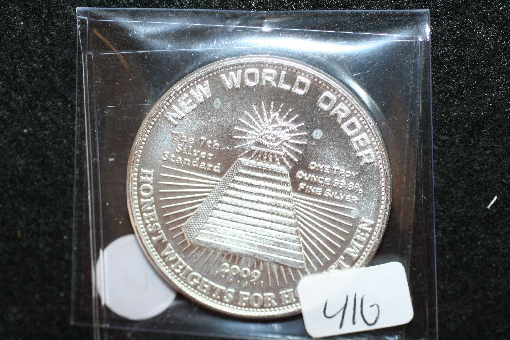 2009 New World Order Silver Round; Ten World Regions Post-Change IS 666; 99.9% Fine Silver 1 Oz.