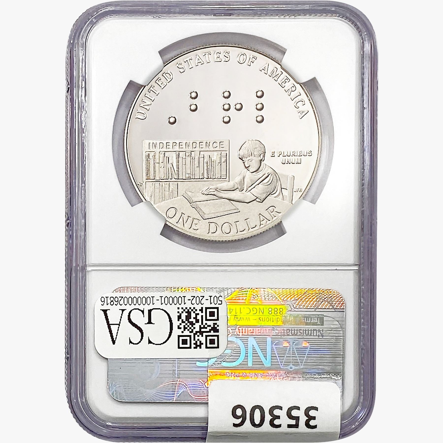 COINS AND CURRENCY LISTED IN GSA’S CATALOG AS GRADED AND ENCAPSULATED BY PCGS, NGC, ANACS, ICG, PCGS CURRENCY, PMG, PCGS BANKNOTE GRADING, CMC OR ANY OTHER THIRD-PARTY GRADING SERVICE ARE LIKEWISE SOLD “AS-IS” EXCEPT AS EXPRESSLY SET FORTH HEREIN. ALL THIRD-PARTY GRADING SERVICE GUARANTEES, INCLUDING AUTHENTICITY, ARE THE SOLE RESPONSIBILITY OF THE THIRD-PARTY GRADING SERVICE AND NOT WARRANTIES OR GUARANTEES OF GSA. BIDDERS SHOULD CONTACT THESE THIRD-PARTY GRADING SERVICES DIRECTLY WITH RESPECT TO ANY CLAIMS OR QUESTIONS THEY MAY HAVE CONCERNING THEIR GUARANTEES AND WARRANTIES. BIDDERS ACKNOWLEDGE AND AGREE THAT AUCTIONEER IS NOT BOUND BY OR LIABLE FOR ANY OPINION OR CERTIFICATION BY ANY THIRD-PARTY GRADING SERVICE. REMOVAL OF A PRODUCT FROM ITS PROTECTIVE CASING OR HOLDER OR ALTERATION OF ANY COIN HOLDER WAIVES ALL RIGHTS CONCERNING THE PRODUCT CONTAINED THEREIN.