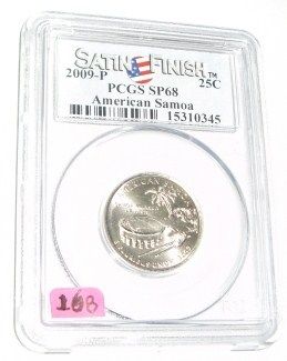 2009-P *AMERICAN SAMOA* Territory Quarter RED BOOK VALUE IS $40.00 *CERTIFIED BY PCGS SATIN FINISH SP68*!! ***Coin, Currency & All Items Listed in this auction - Grades, Conditions and Values are not Safe Deposit Coins LLC Responsibilty. Grades, Condition and Values are determined by Consigner(s) & Buyers ONLY***