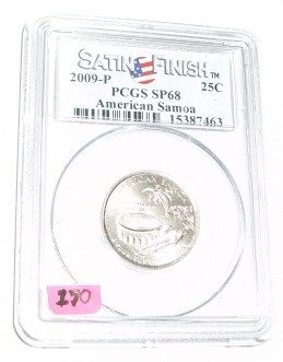 2009-P *AMERICAN SAMOA* Territory Quarter RED BOOK VALUE IS $40.00 *CERTIFIED BY PCGS SATIN FINISH SP68*!! ***Coin, Currency & All Items Listed in this auction - Grades, Conditions and Values are not Safe Deposit Coins LLC Responsibilty. Grades, Condition and Values are determined by Consigner(s) & Buyers ONLY***