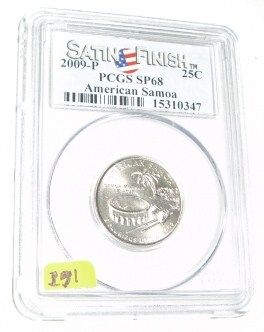2009-P *AMERICAN SAMOA* Territory Quarter RED BOOK VALUE IS $40.00 *CERTIFIED BY PCGS SATIN FINISH SP68*!! ***Coin, Currency & All Items Listed in this auction - Grades, Conditions and Values are not Safe Deposit Coins LLC Responsibilty. Grades, Condition and Values are determined by Consigner(s) & Buyers ONLY***