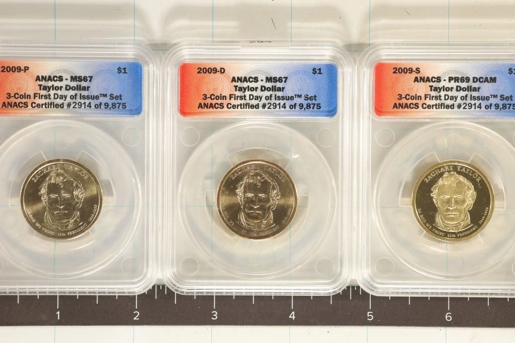 PR69 DCAM, 2009-D ANACS MS67 AND 2009-P ANACS MS67. THIS IS A 3 COIN SET #2914 OF 9875 FROM THE 3 COIN FIRST DAY ISSUE SET