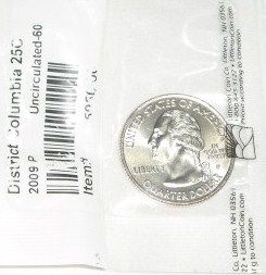 2009-P *DISTRICT OF COLUMBIA* QUARTER *NICE MS-60 HIGH GRADE* IN PACKAGE!! COIN CAME OUT OF SAFE!! ***Coin, Currency & All Items Listed in this auction - Grades, Conditions and Values are not Safe Deposit Coins LLC Responsibilty. Grades, Condition and Values are determined by Consigner(s) & Buyers ONLY