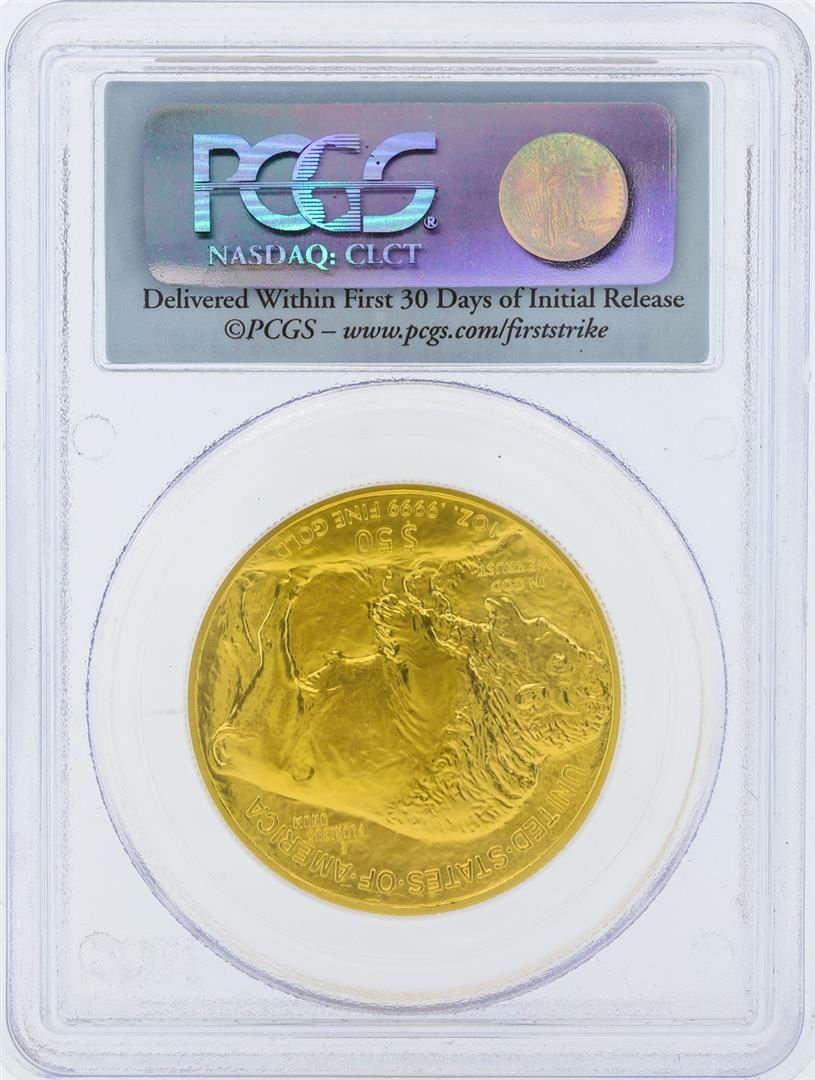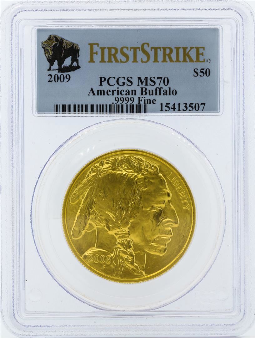 One 2009 PCGS MS70 First Strike $50 American Buffalo Gold Coin.