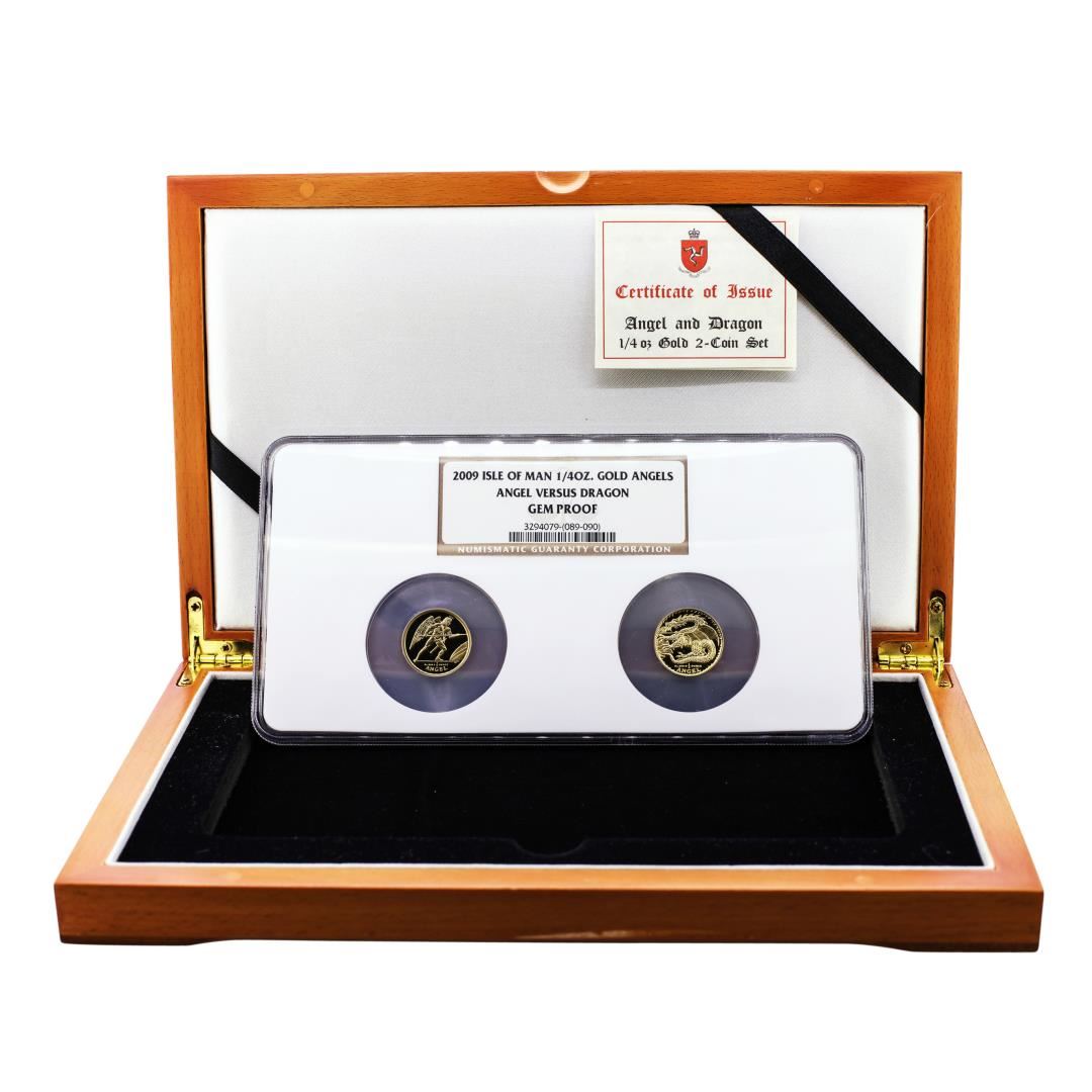 One 2009 Proof Isle of Man 1/4 oz Angel vs Dragon Gold Coin Sent NGC Gem Proof w/Box & COA. NGC Certified.