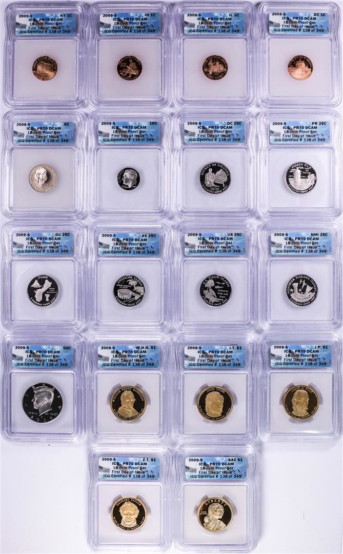 One 2009-S (18) Coin U.S. Proof Set ICG PR70DCAM First Day of Issue. ICG Certified.