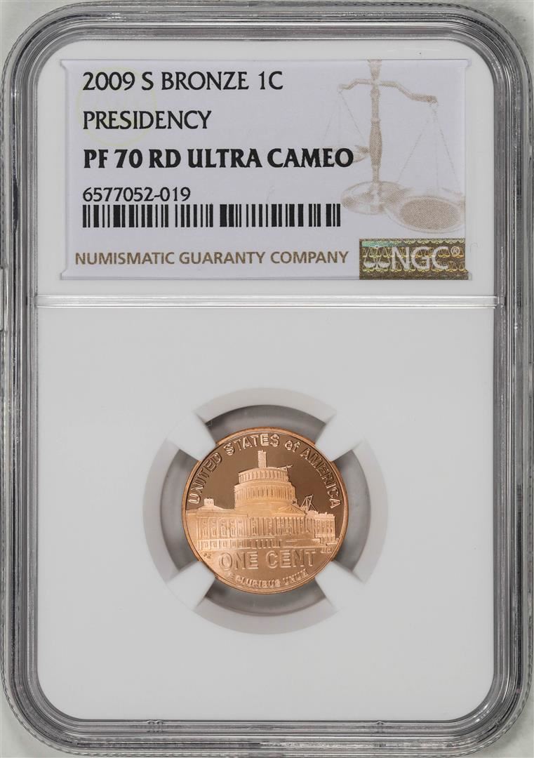 One 2009-S Bronze Proof Lincoln Presidency Cent Coin NGC PF70RD Ultra Cameo. NGC Certified.