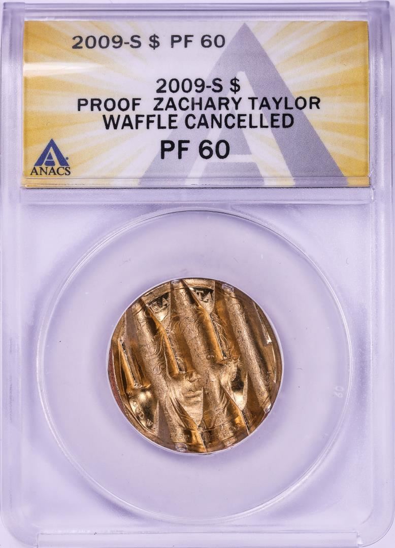 One 2009-S Proof Zachary Taylor Presidential Dollar Waffle Cancelled Coin ANACS PF60.