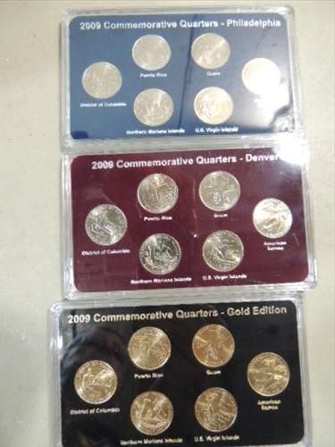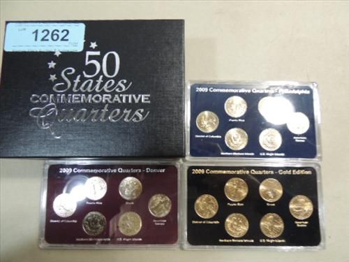 2009 STATE WASHINGTON QUARTER 3 SETS (18 COINS). GOLD, DENVER & PHILADELPHIS. AS SHOWN. VIEW PICTURE FOR DETAIL.