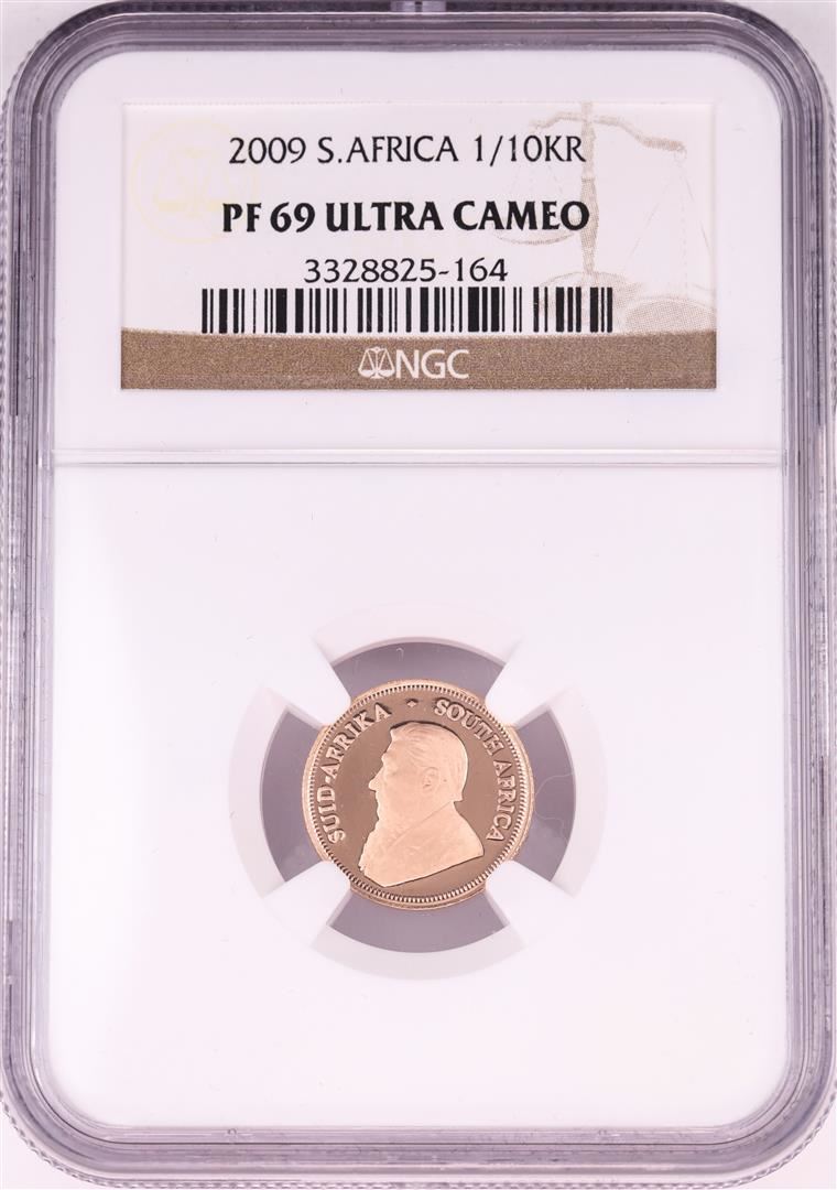 One 2009 South Africa 1/10 Krugerrand Gold Coin NGC PF69 Ultra Cameo.