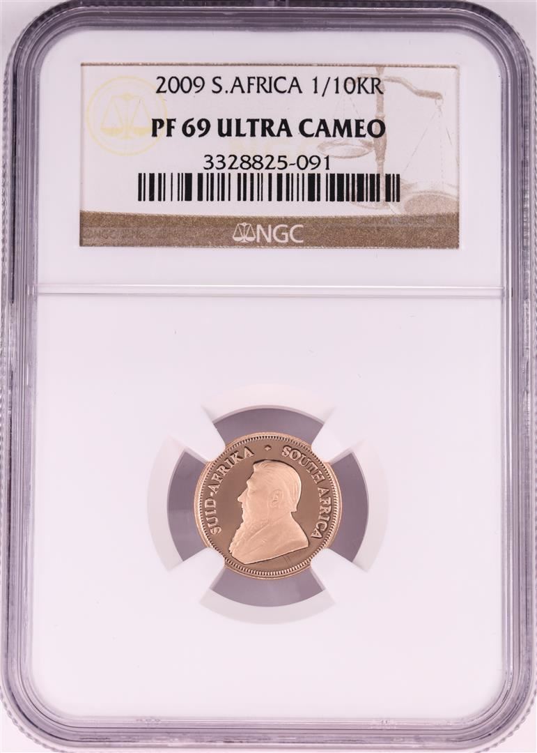 One 2009 South Africa 1/10 Krugerrand Gold Coin NGC PF69 Ultra Cameo.