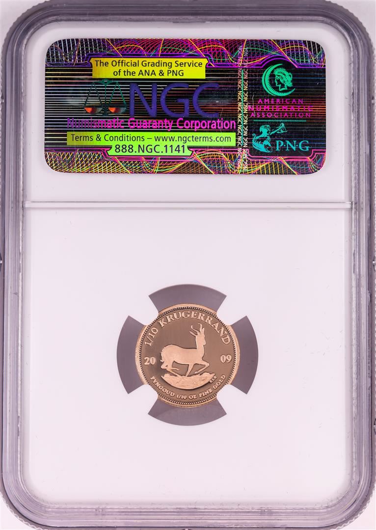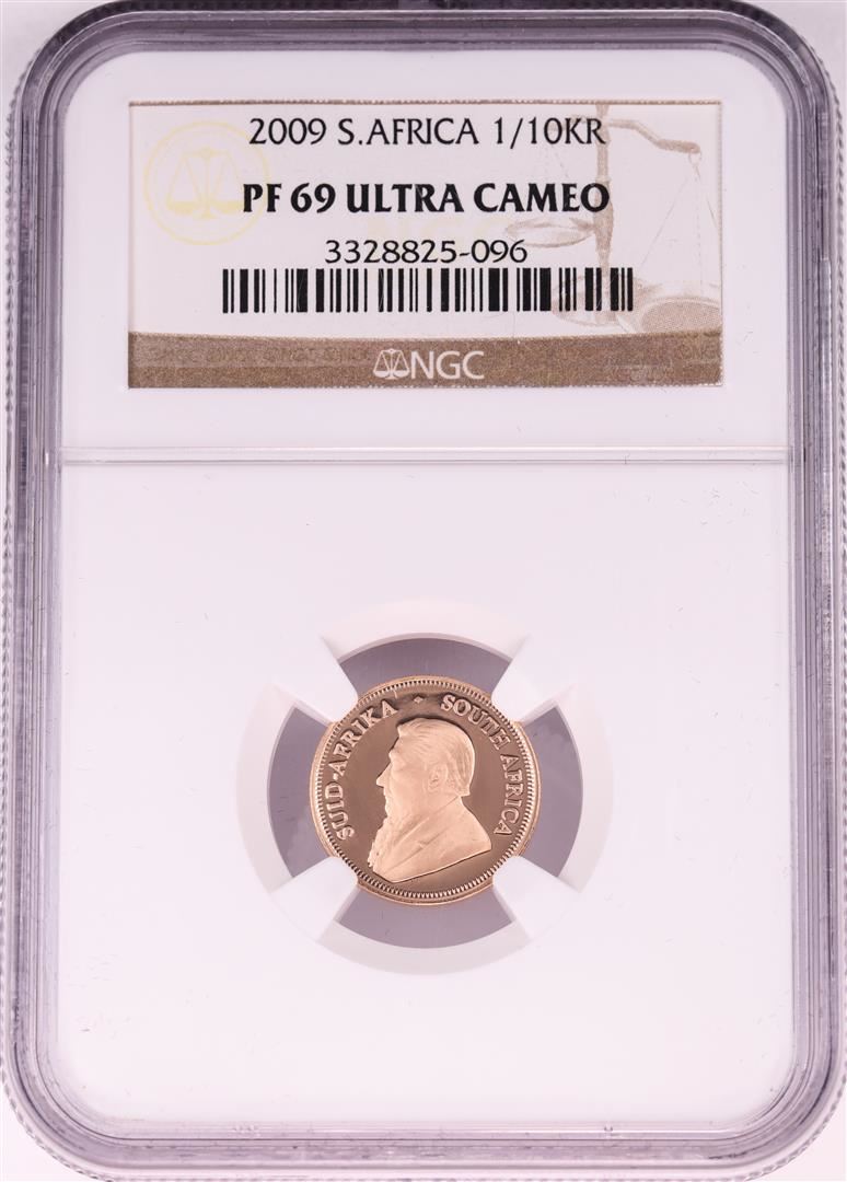 One 2009 South Africa 1/10 Krugerrand Gold Coin NGC PF69 Ultra Cameo.
