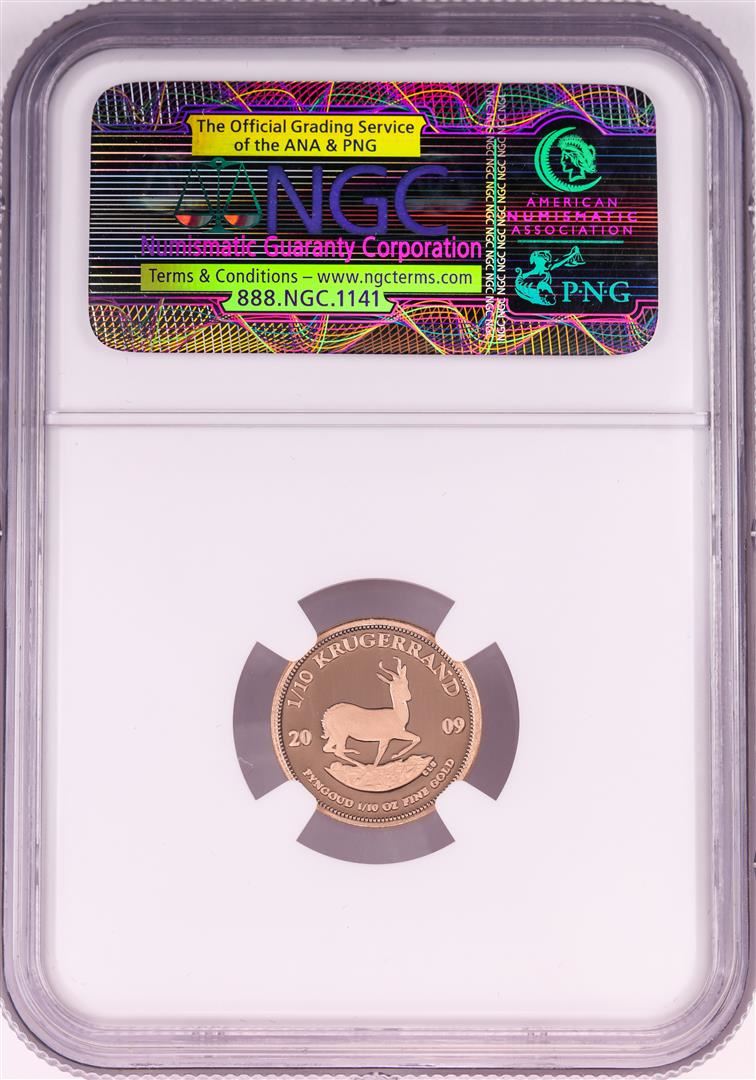 One 2009 South Africa 1/10 Krugerrand Gold Coin NGC PF69 Ultra Cameo.
