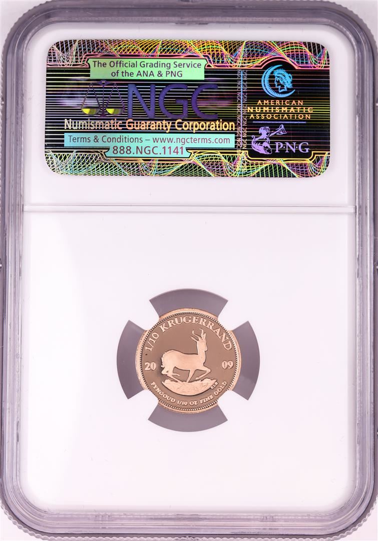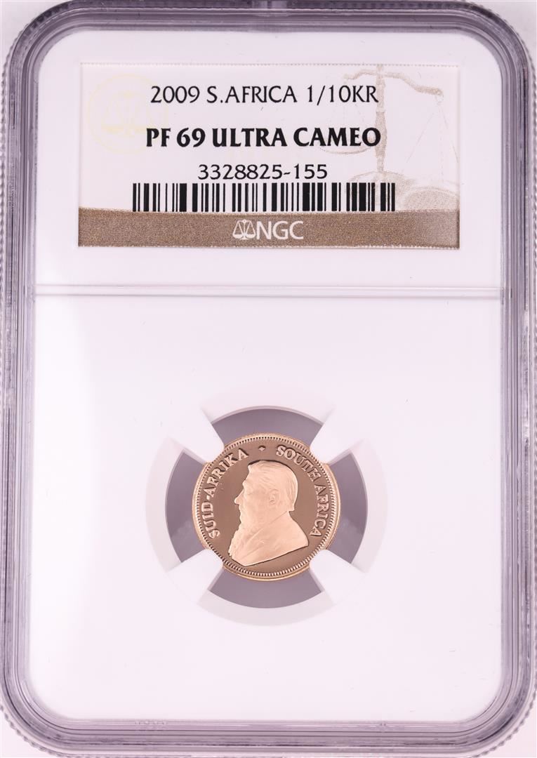 One 2009 South Africa 1/10 Krugerrand Gold Coin NGC PF69 Ultra Cameo.