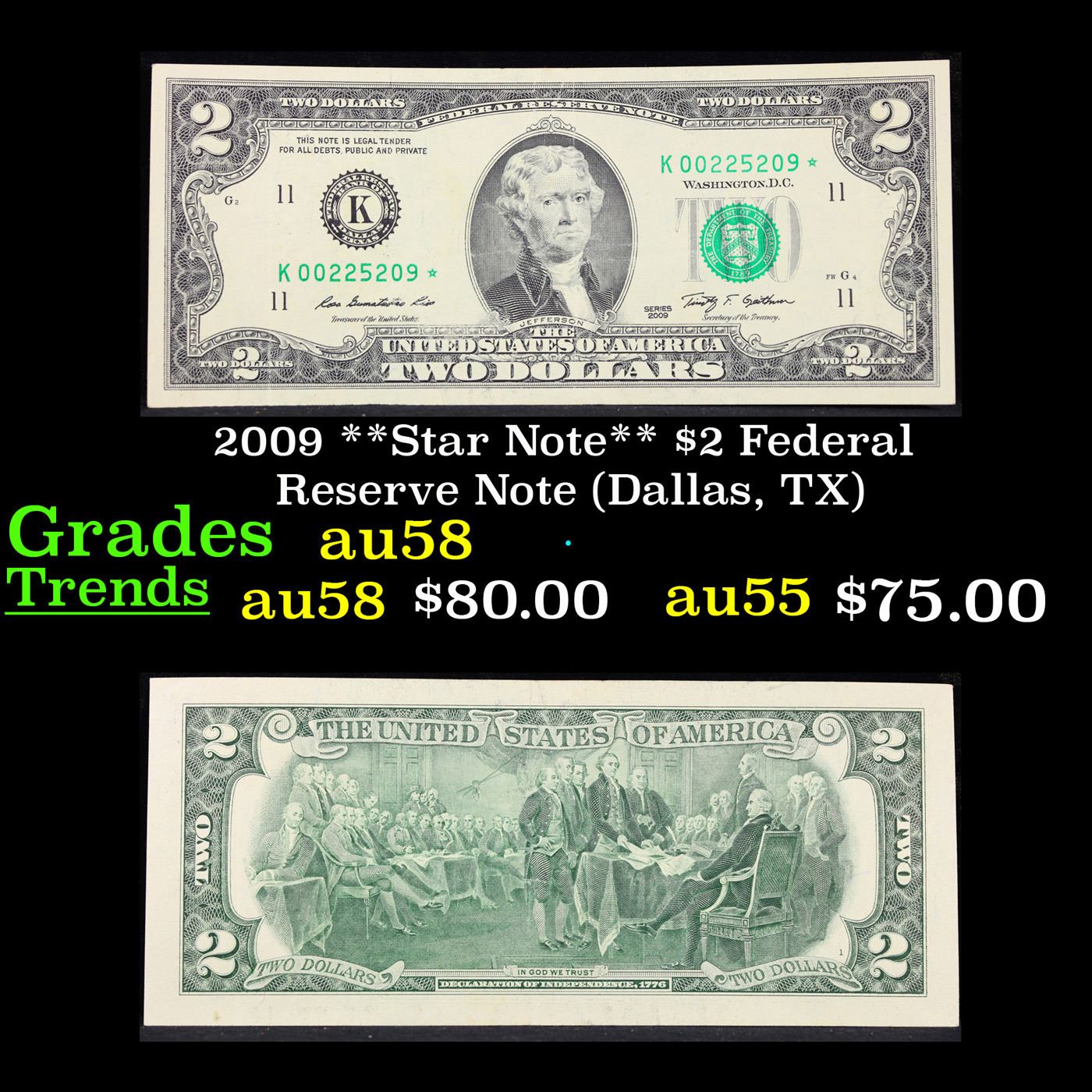 2009 **Star Note** $2 Federal Reserve Note (Dallas, TX) Grades Choice AU/BU Slider.