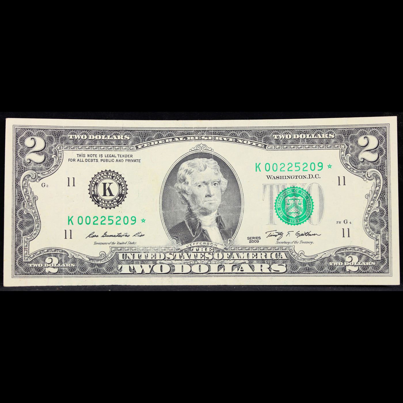 2009 **Star Note** $2 Federal Reserve Note (Dallas, TX) Grades Choice AU/BU Slider