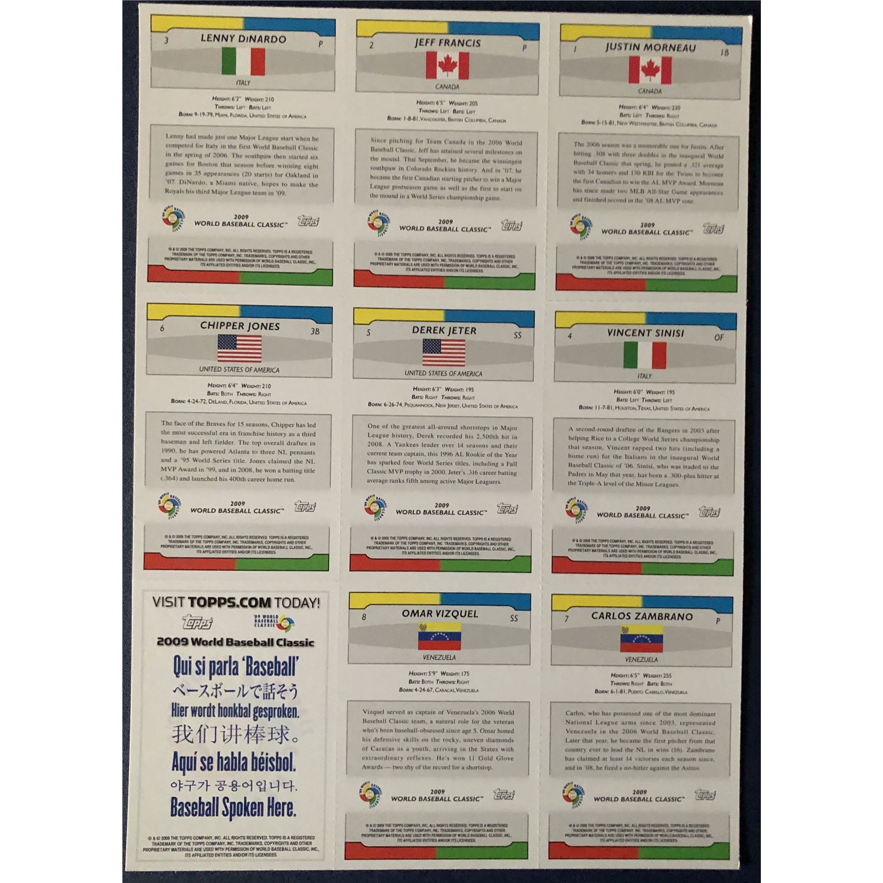 9 card uncut sheet features HOF'ers Derek Jeter & Chipper Jones