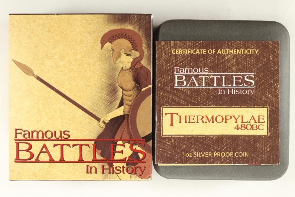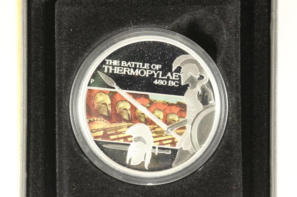 DOLLAR "FAMOUS BATTLES IN HISTORY", THE BATTLE OF THERMOPYLAE 480 B.C., ORIGINAL MINT PACKAGING BY THE PERTH MINT