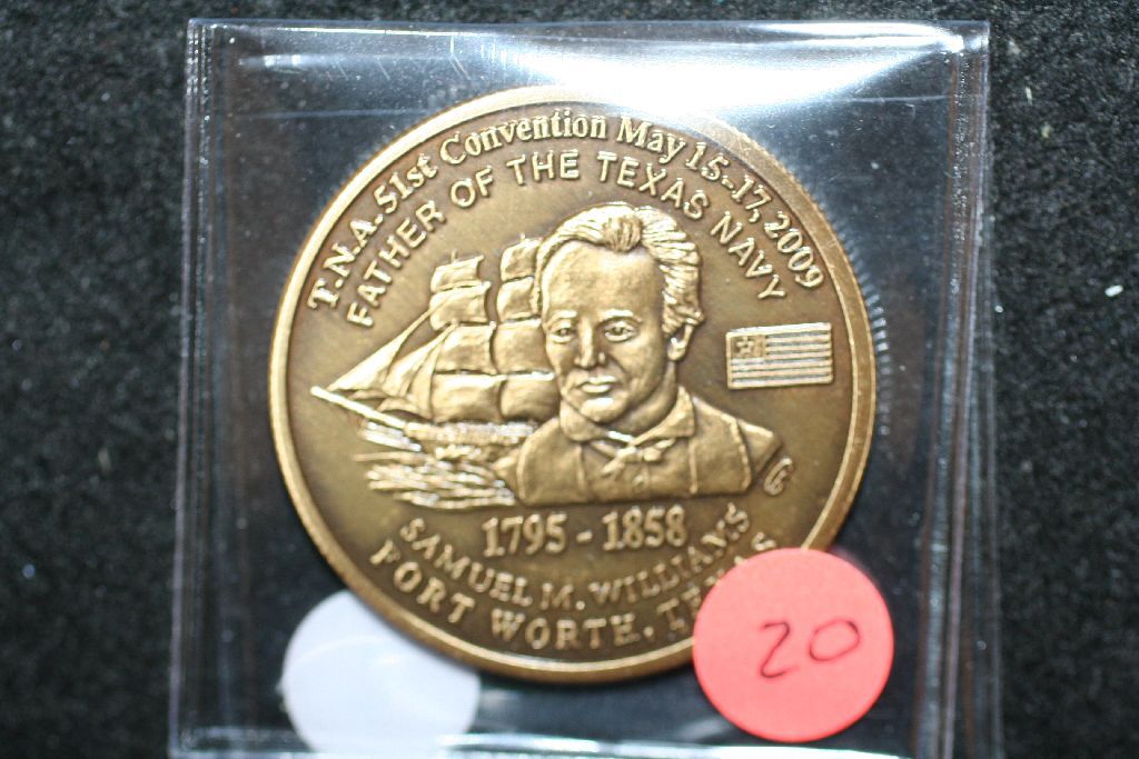 2009 Texas Numismatic Assoc. Inc. Convention Medal; Father of the Texas Navy-Samuel M. Williams Ft. Worth TX