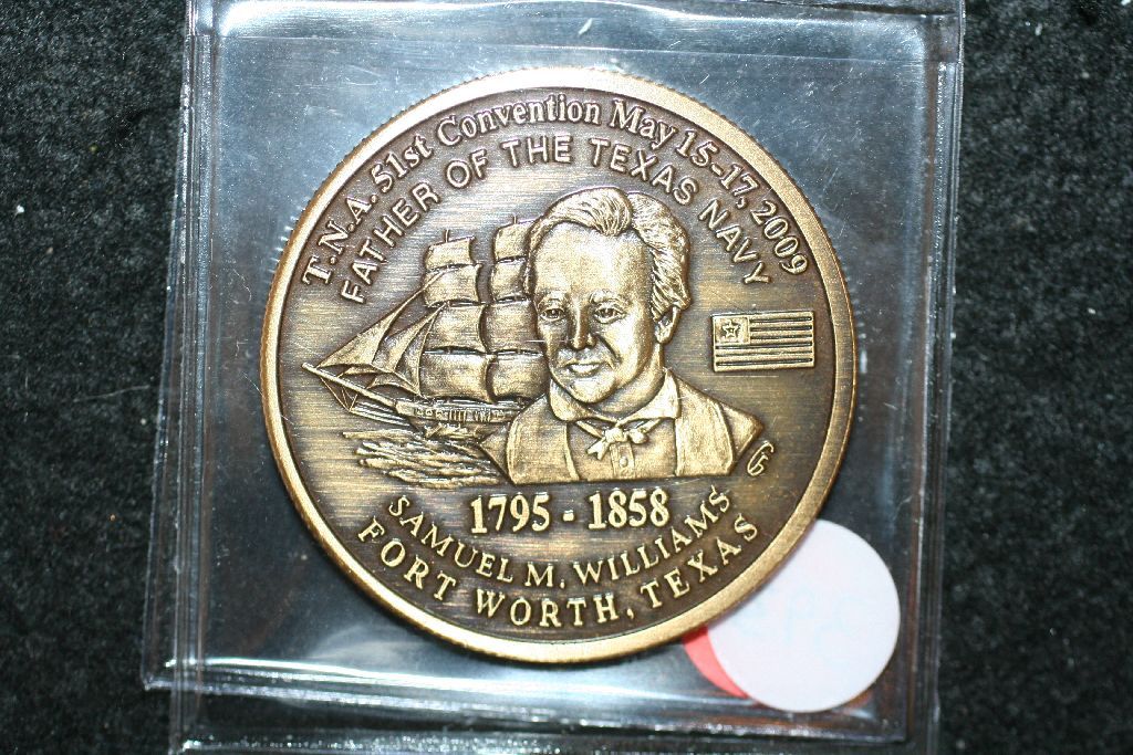 2009 Texas Numistatic Assoc Inc. 51st Convention Medallion; Father of the Texas Navy-Samuel M. Williams Ft. Worth TX