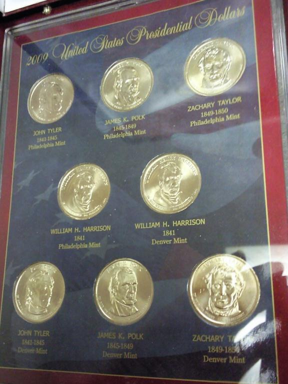 8 COINS IN NICE WOOD DISPLAY BOX