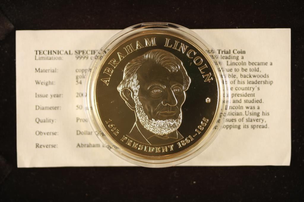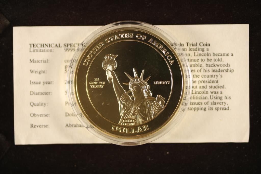 COPPER LAYERED IN 24K GOLD IN HARD PLASTIC CAPSULE WITH CERT BY THE AMERICAN MINT, 2'' ROUND, LIMITED EDITION OF 9999