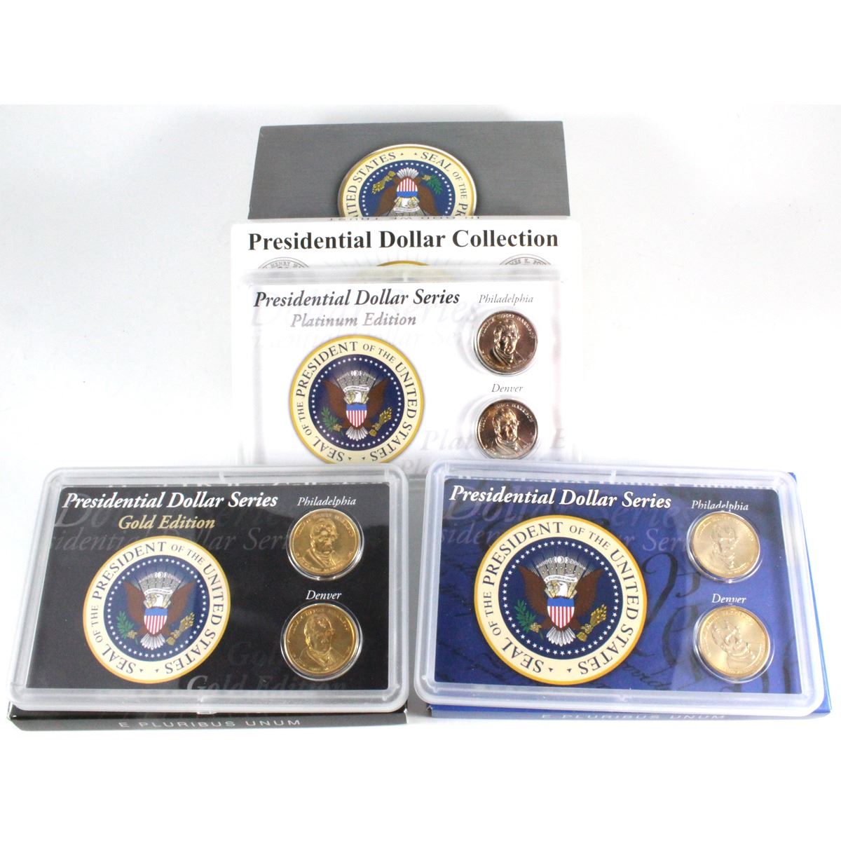 2009 USA $1 Presidential Uncirculated, Gold Plated and Platinum Plated Sets. Includes 4 sets, each c