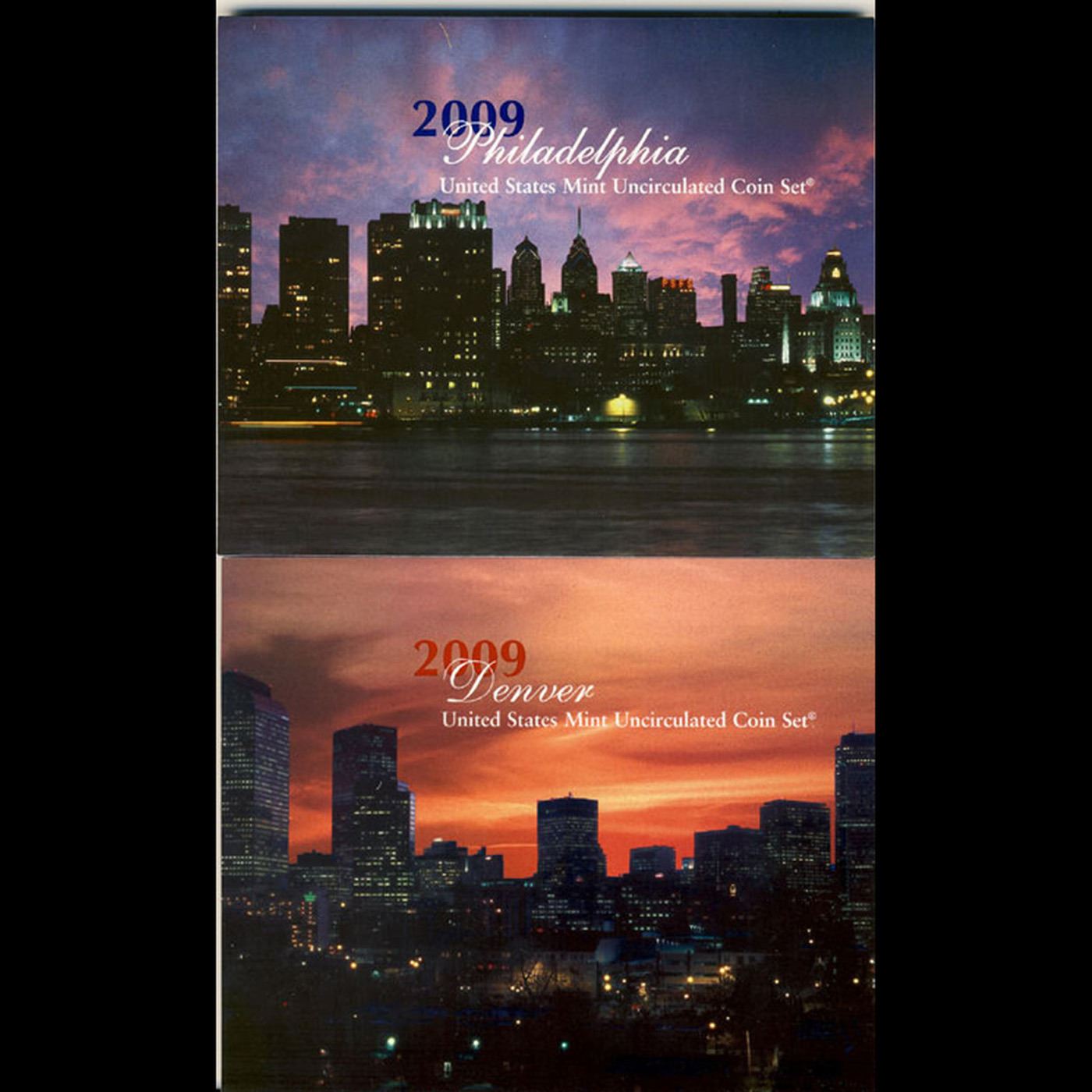 2009 United States Mint Set in Original Government Packaging! 36 Coins Inside!. The annual uncirculated coin set expanded to the largest number of coins in the history of the offering. The 2009 Mint Set contained an incredible 36 different coins, as the US Mint introduced two new series with rotating designs. The 2009 Lincoln Cents were issued with four different designs to mark the bicentennial of the birth of Abraham Lincoln. The designs represented his birthplace and childhood, formative years, professional life, and presidency. As a capstone to the State Quarters, a separate program was introduced to honor the other non-state jurisdictions of the United States. The six different quarters featured the District of Columbia, Puerto Rico, Guam, American Samoa, the U.S. Virgin Islands, and the Northern Mariana Islands. The release of Presidential Dollars continued with coins featuring William Henry Harrison, John Tyler, James K. Polk, and Zachary Taylor. Finally, a new series of Native American Dollars began, with the first annually rotating design depicting the Three Sisters method of planting on the reverse. Coins which featured constant designs were limited to only the Jefferson Nickel, Roosevelt Dime, and Kennedy Half Dollar. As another special aspect to the release of the Bicentennial Lincoln Cents, the coins would be struck in a composition of 95% copper, 3% zinc, and 2% tin, identical to the original composition when the series began in 1909. (Since 1982, the standard composition of the one cent coin had been changed to 97.5% zinc and 2.5% copper.) When the sets were finally issued, a small message was included within each set warning of potential tarnishing of the 2009 Lincoln Cents over time. Packaging for the sets was larger in size, to allow for another row of coins, but otherwise retained the same style. The outer illustrations displayed skylines of Philadelphia and Denver at dusk. The packs opened to reveal the coins neatly displayed in blisters with coin specification information above. The packaging allowed both sides of the coins, as well as the edges to remain visible.