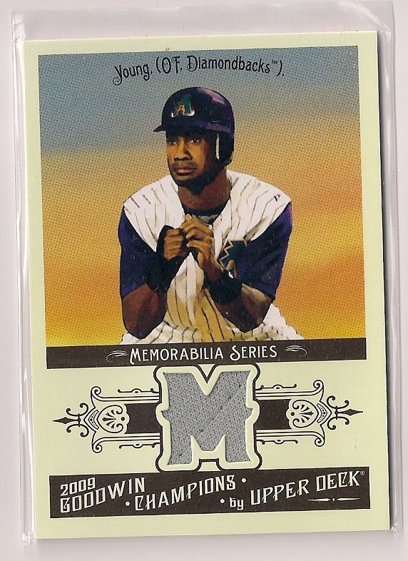 2009 Upper Deck Goodwin Champions Chris Young Game-Used Material Insert Card. This Insert features a Solid Gray piece of Game-Used Material. Card is Near Mint.