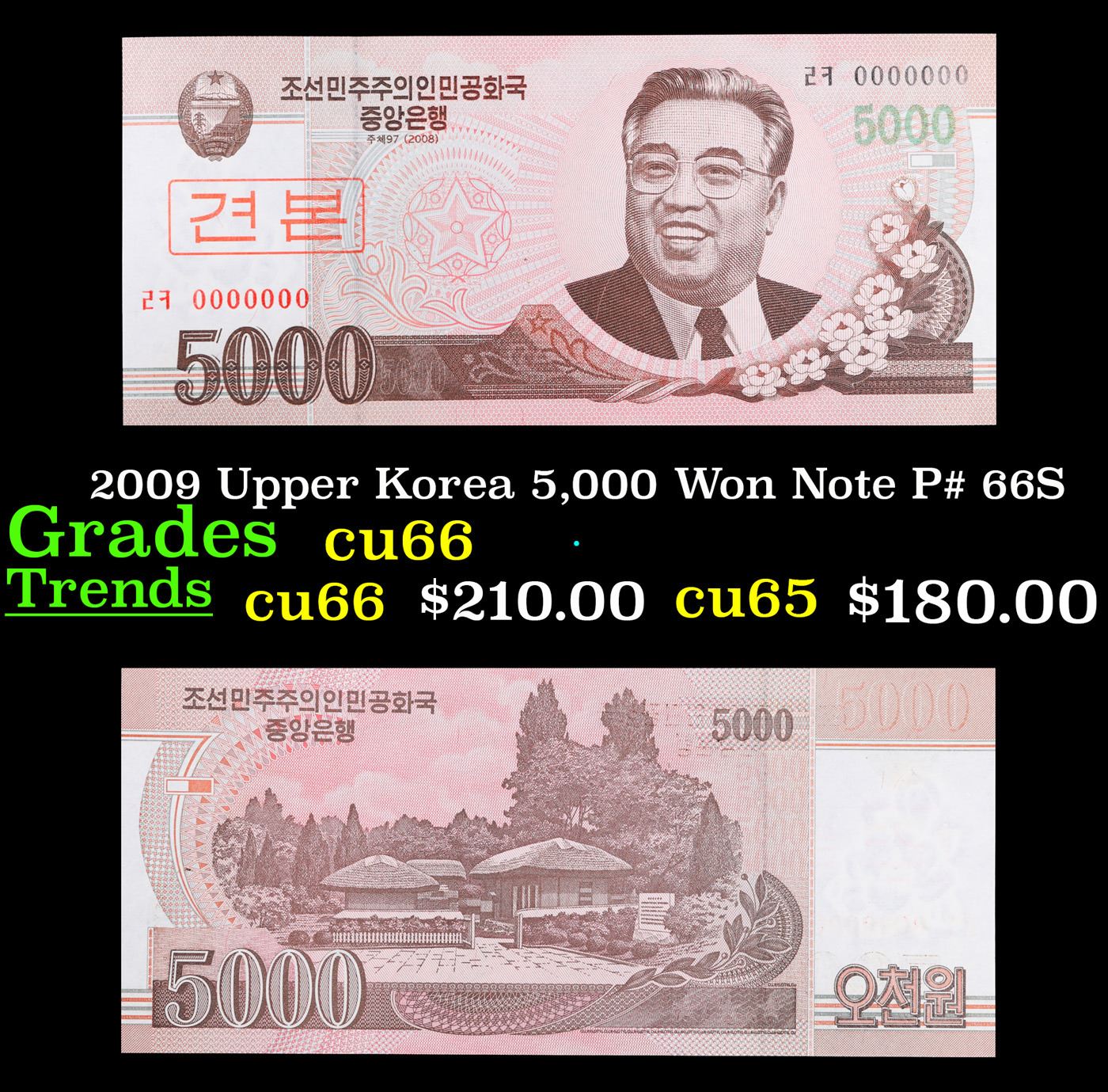 2009 Upper Korea 5,000 Won Note P# 66S Grades Gem+ CU.