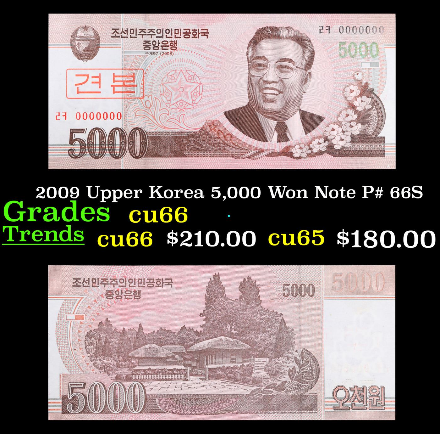 2009 Upper Korea 5,000 Won Note P# 66S Grades Gem+ CU.