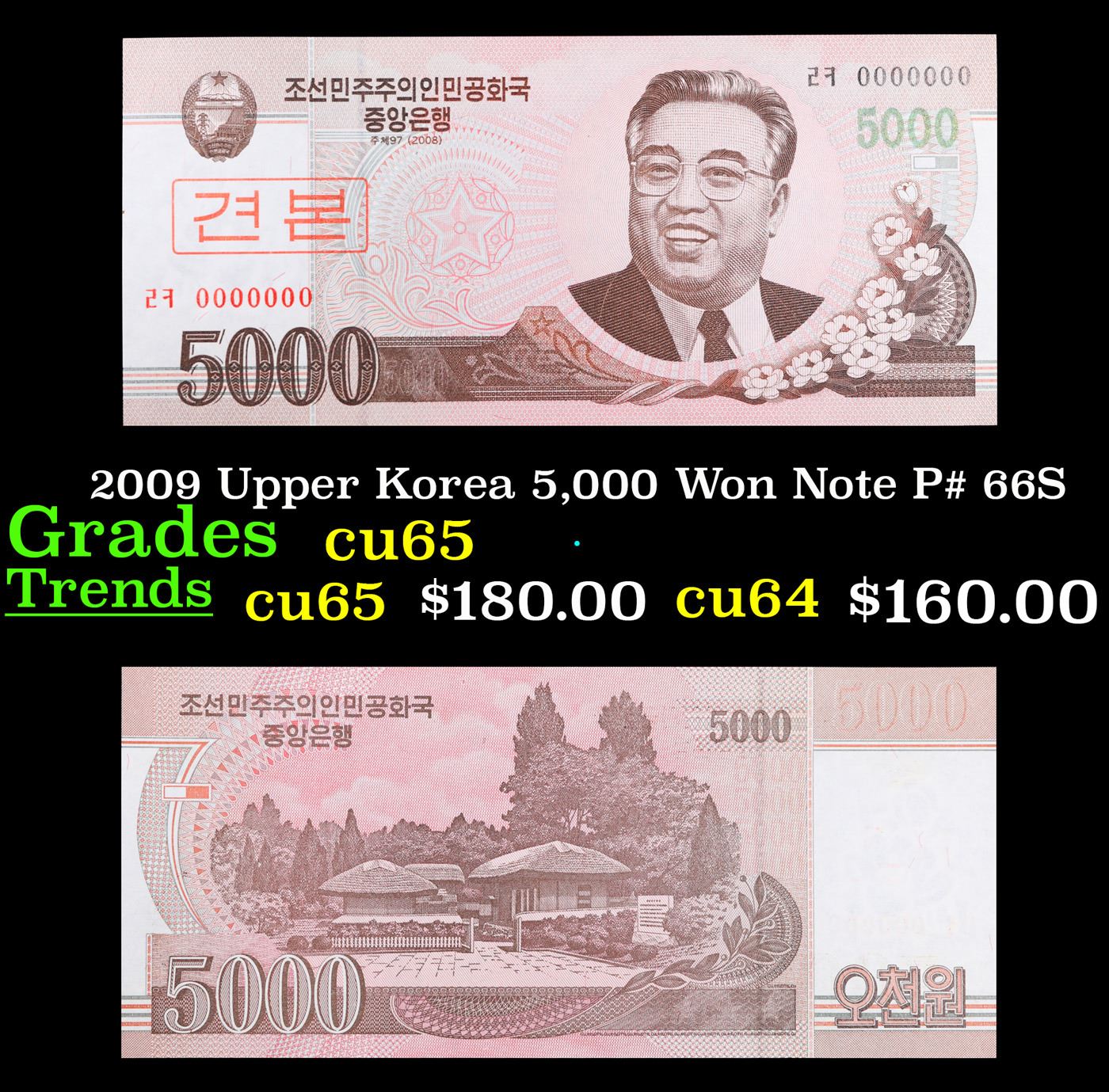 2009 Upper Korea 5,000 Won Note P# 66S Grades Gem CU.