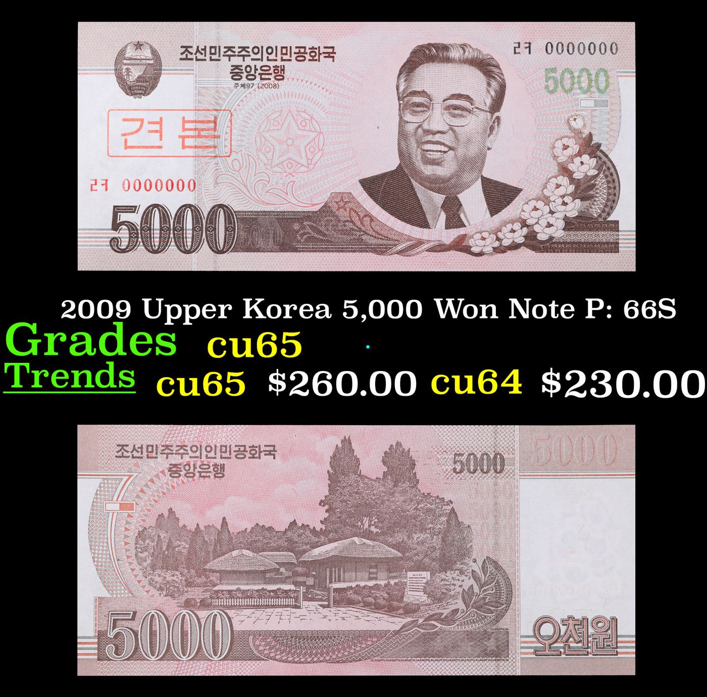 2009 Upper Korea 5,000 Won Note P: 66S Grades Gem CU.