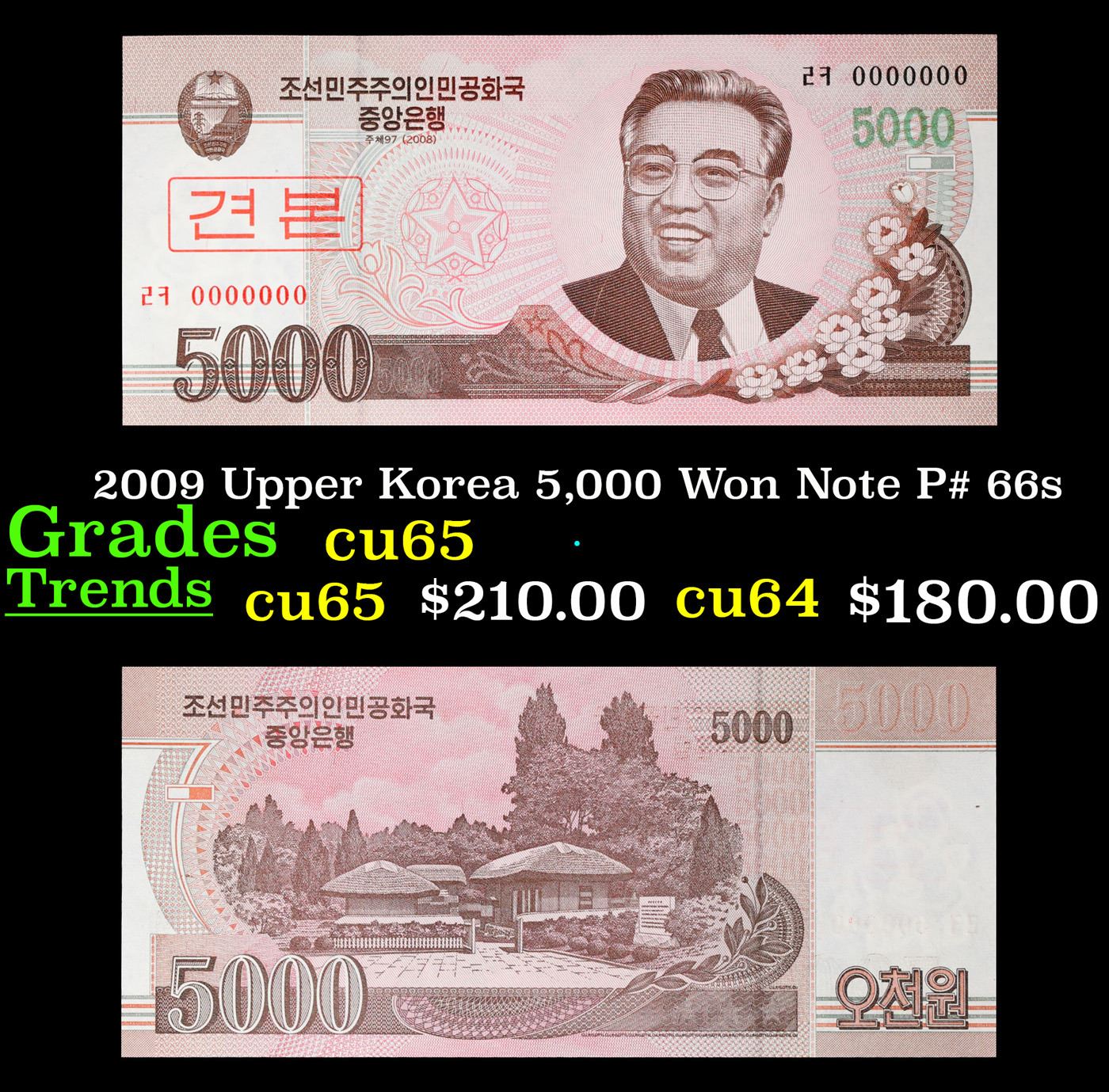 2009 Upper Korea 5,000 Won Note P# 66s Grades Gem CU.