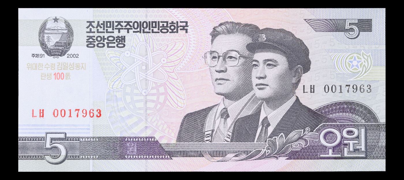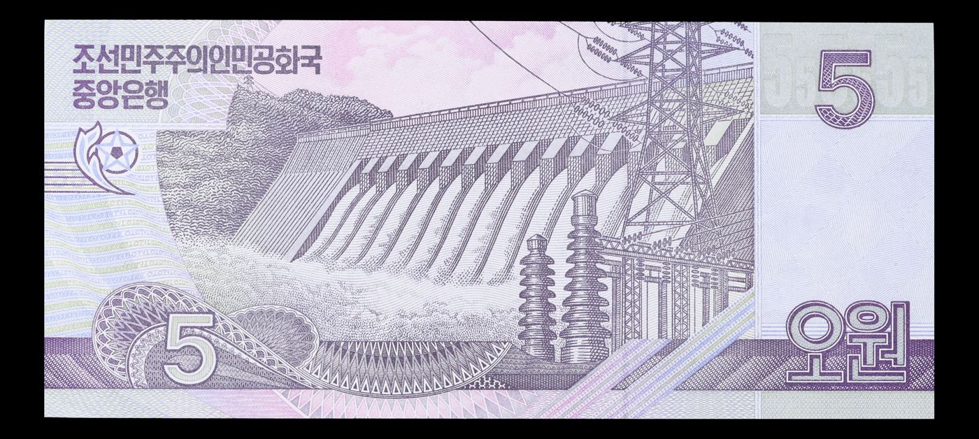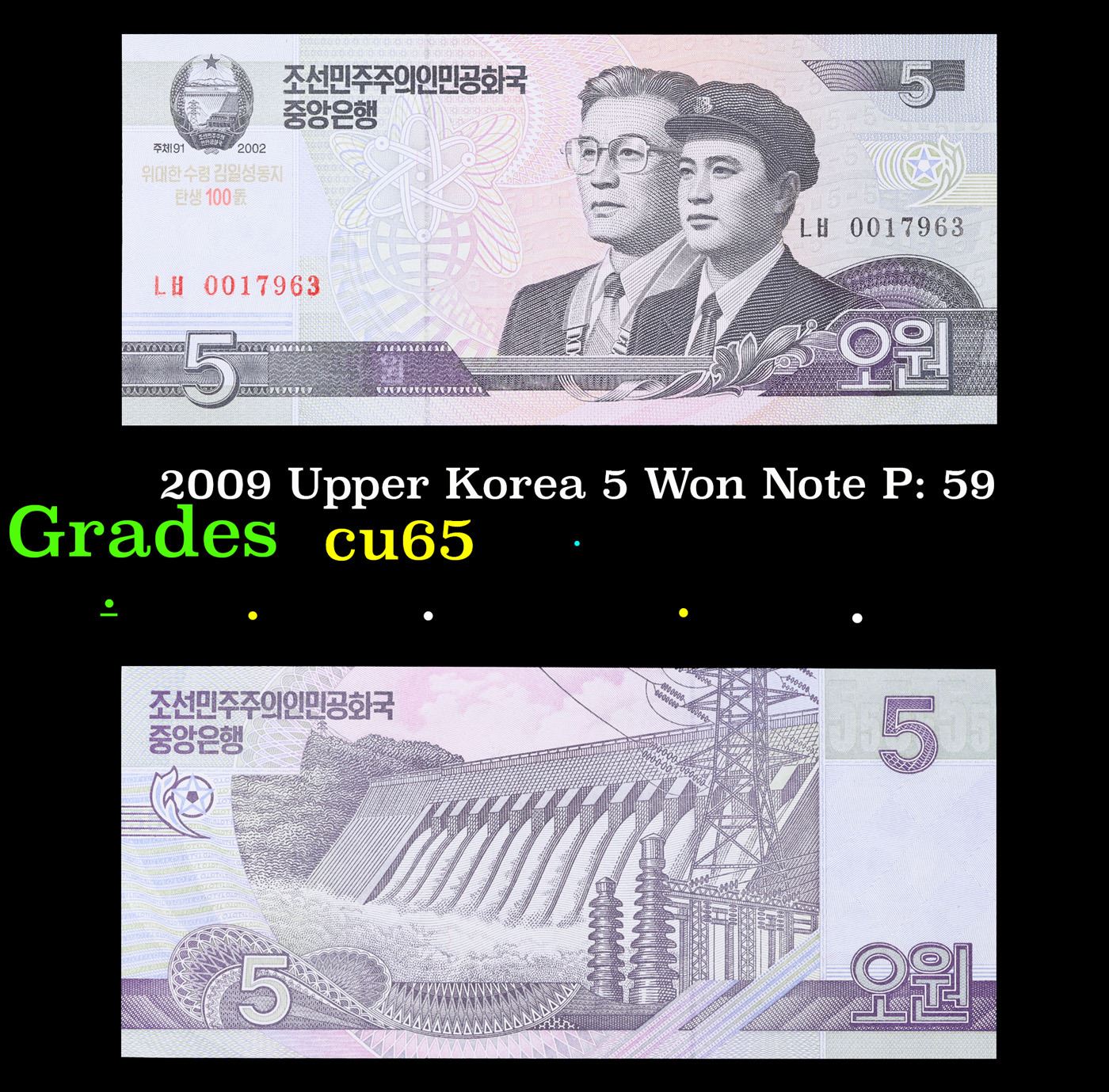 2009 Upper Korea 5 Won Note P: 59 Grades Gem CU.