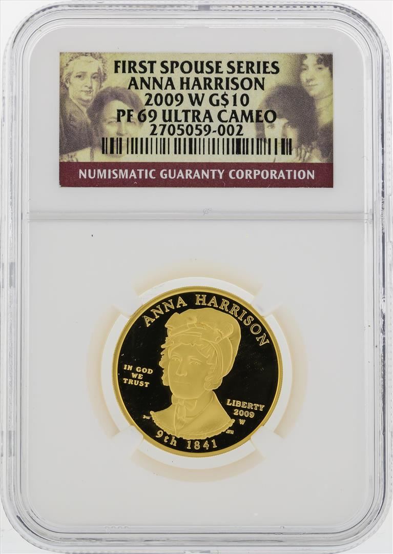One 2009 W $10 First Spouse Series Anna Harrison Gold Coin NGC PF69 Ultra Cameo. NGC Certified.