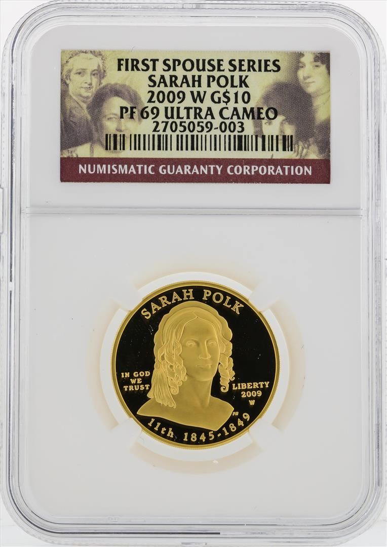 One 2009 W $10 First Spouse Series Sarah Polk Gold Coin NGC PF69 Ultra Cameo. NGC Certified.