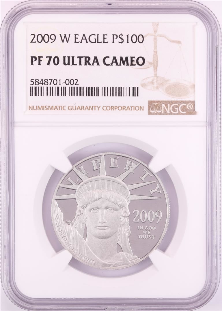 One 2009-W $100 Proof Platinum American Eagle Coin NGC PF70 Ultra Cameo. NGC Certified.