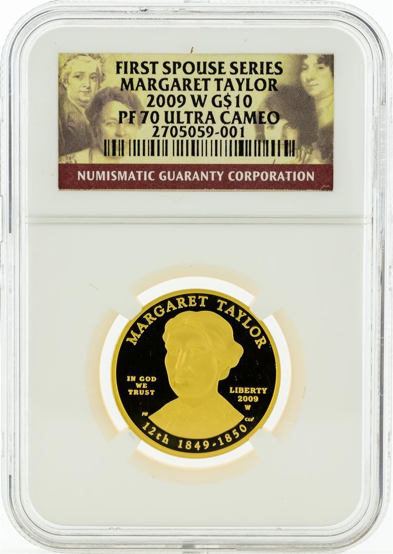 One 2009 W NGC PF70 $10 First Spouse Series Margaret Taylor Gold Coin. NGC Certified.