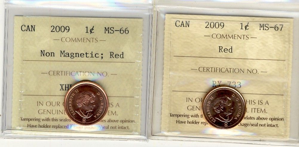 2009 and 2009 Non Magnetic ICCS MS66 & MS67; Red. 2 coins
