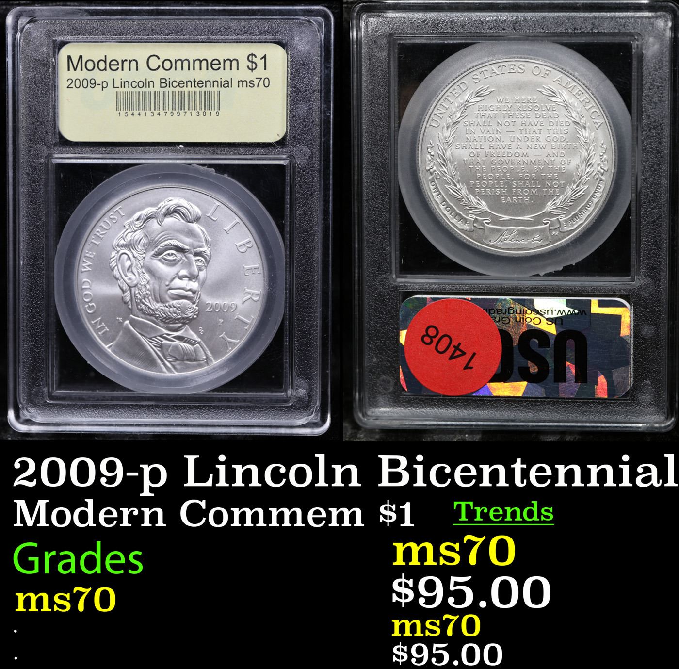 2009-p Lincoln Bicentennial Modern Commem Dollar $1 Graded ms70, Perfection By USCG.