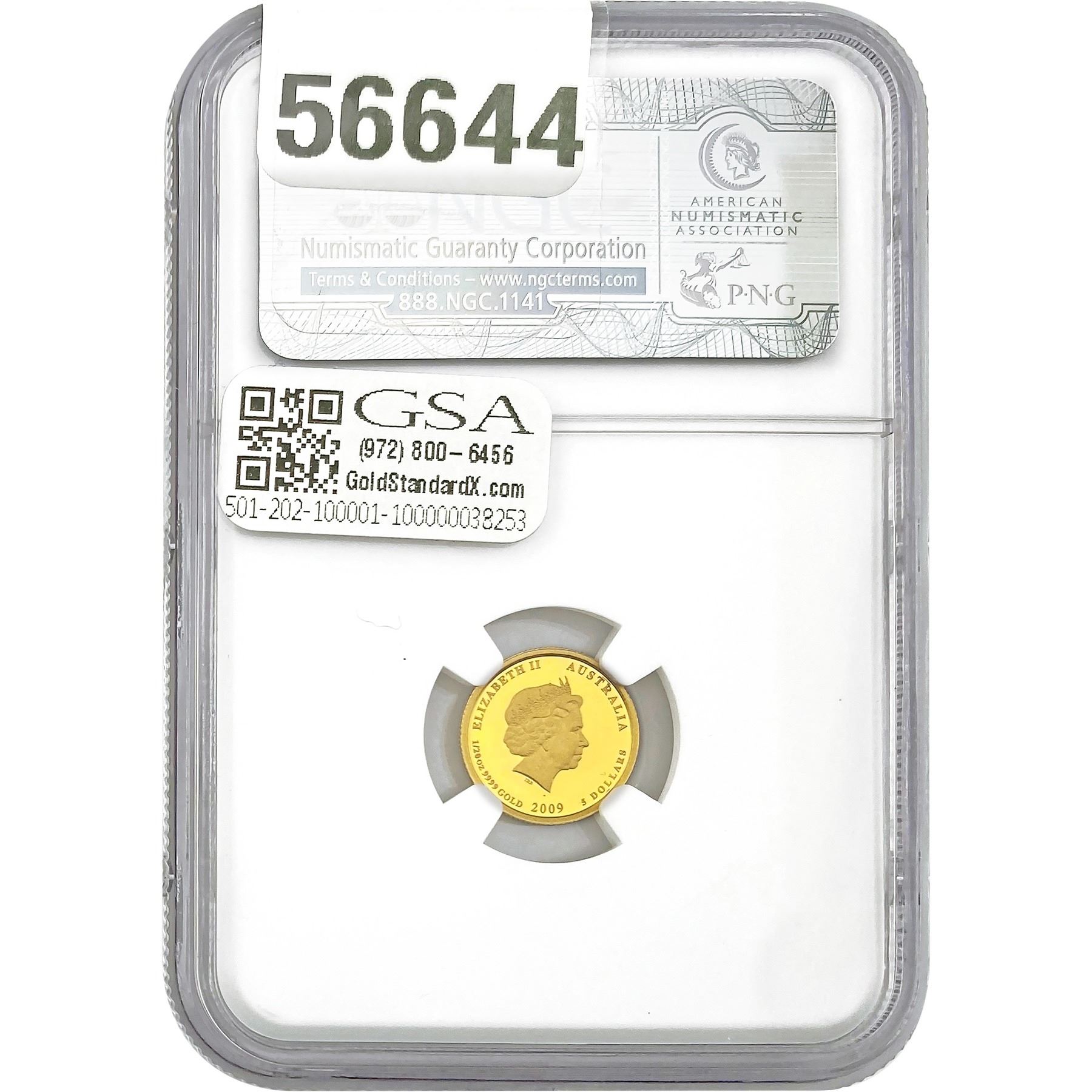 e. Coins sold referencing a third-party grading service are sold “AS IS” without any express or implied warranty, except for a guarantee by GSA that they are genuine. Removal or alteration of the holder, voids all of Bidder’s claims concerning that Product. Certain warranties may be available from the grading services and Bidders are referred to them for further details: Numismatic Guaranty Corporation (NGC), PO Box 4776, Sarasota, FL 34230, www.ngccoin.com/services/writtenguarantee.asp; Professional Coin Grading Services (PCGS), PO Box 9458, Newport Beach, CA 92658, www.pcgs.com/guarantee.html; ANACS, 6555 S. Kenton St., Ste. 303, Englewood, CO 80111; and Independent Coin Grading Co. (ICG), 7901 East Bellview, Ave., Suite 50, Englewood, CO 80111.