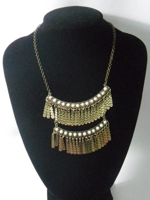 200CTW WHITE BEADS 2-LAYER LANTERN OLD GOLD BRASS NECKL **|**|** 200CTW WHITE BEADS 2-LAYER LANTERN OLD GOLD BRASS NECKLACE;18INCH ; MSRP: $150