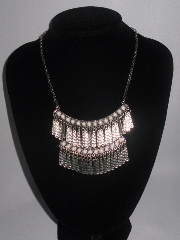 200CTW WHITE BEADS 2-LAYER SILVERLANTERN BRASS NECKLACE **|**|** 200CTW WHITE BEADS 2-LAYER SILVERLANTERN BRASS NECKLACE;18INCH ; MSRP: $150