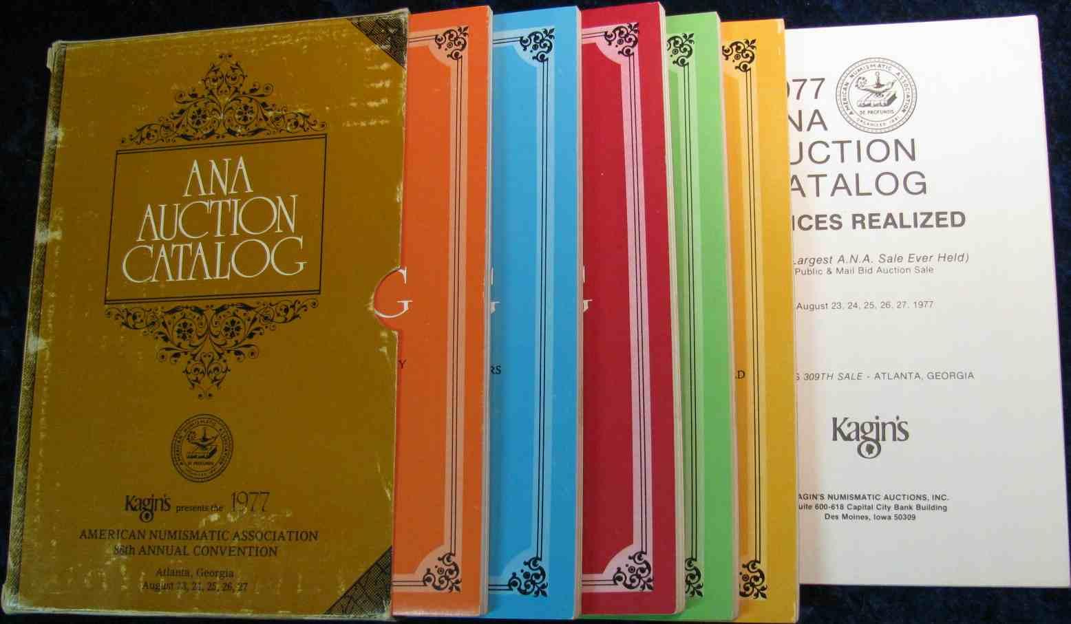201. 1977 ANA Auction Catalog with Prices Realized. Five parts complete in Collector's edition sleeve.